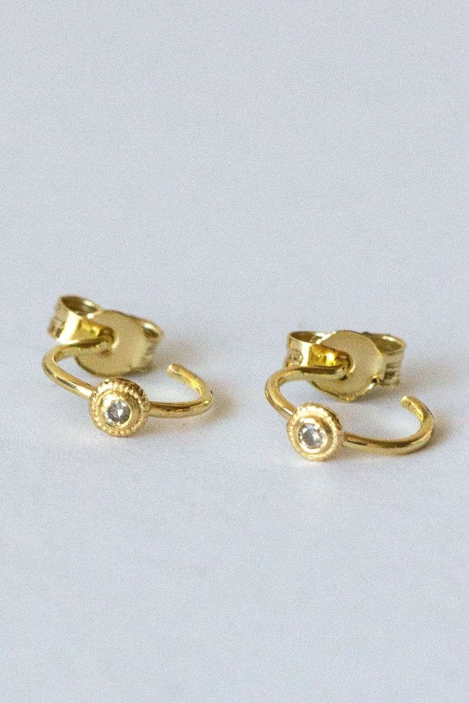 5 Octobre Bali Diamond Stud Gold Mini Hoops