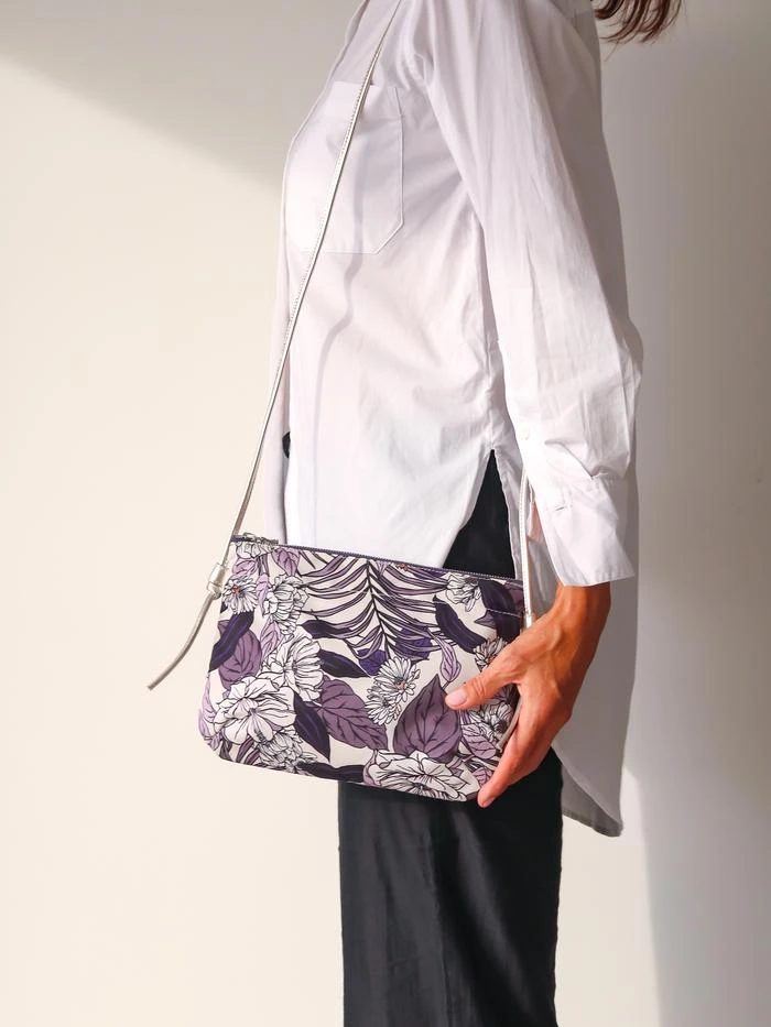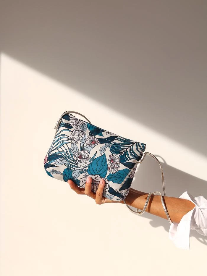 NEW | Brera, the satin nylon crossover bag with Floral print, exclusive Brontibay design, with its adjustable shoulder strap in metallic full grain leather. Ideal size for your essentials.
