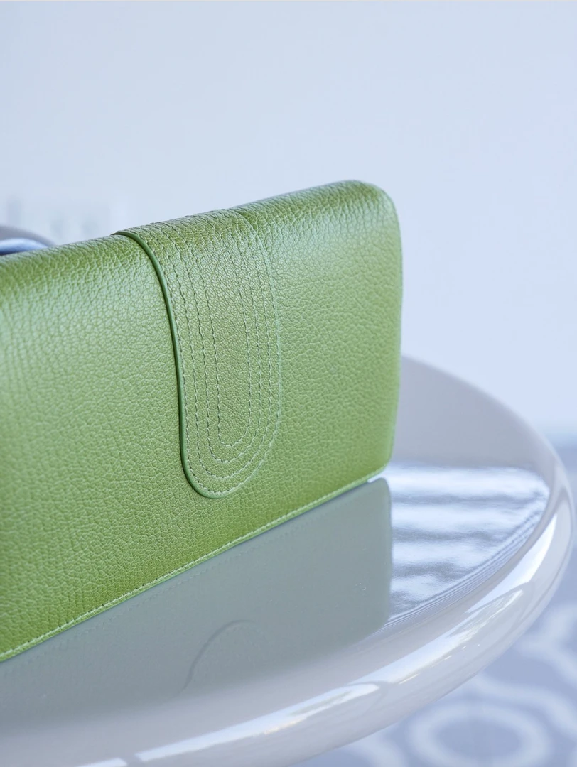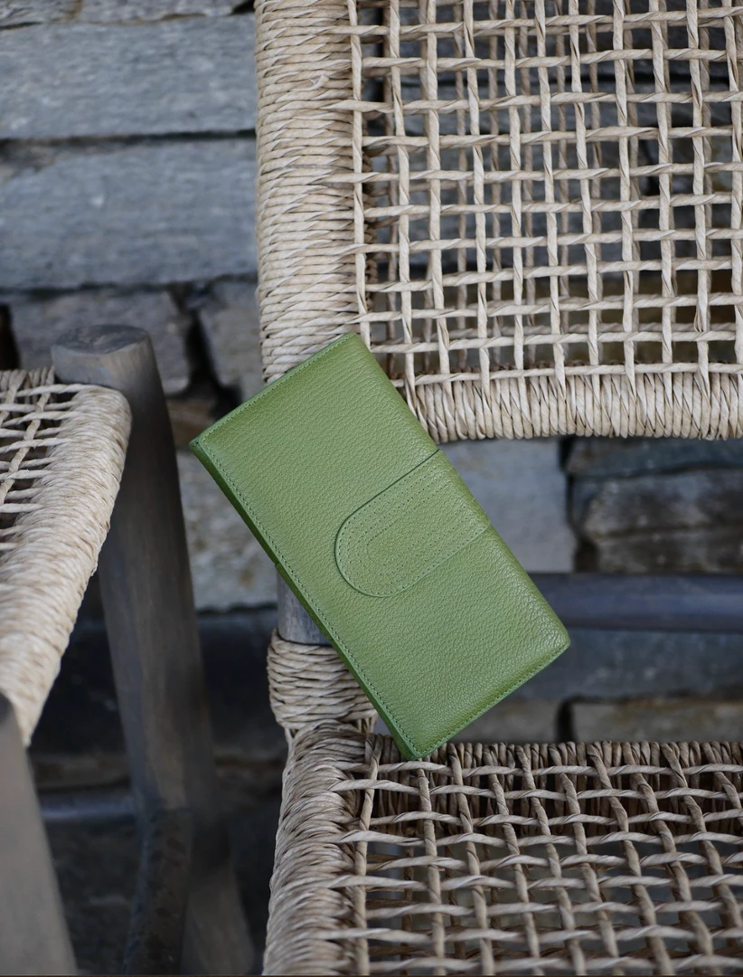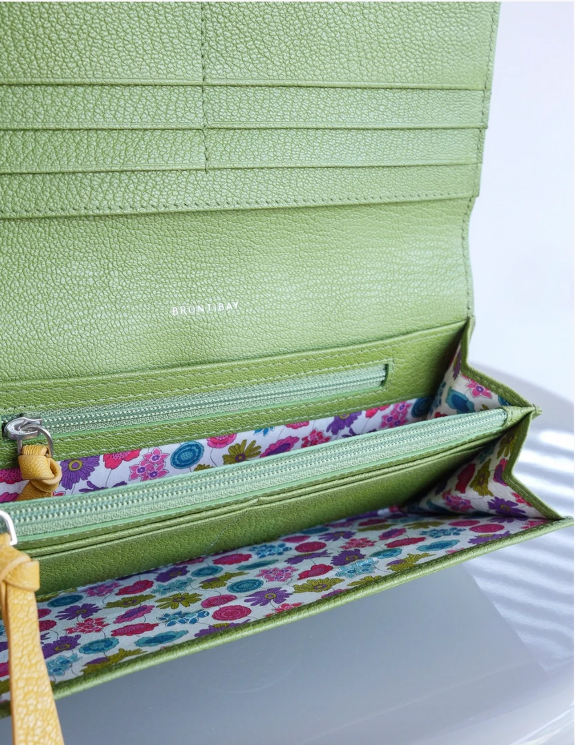 Byzance wallet in full grain Dutch leather, stitched yoke detail, lined with a Liberty cotton print. Contains 10 card slots.