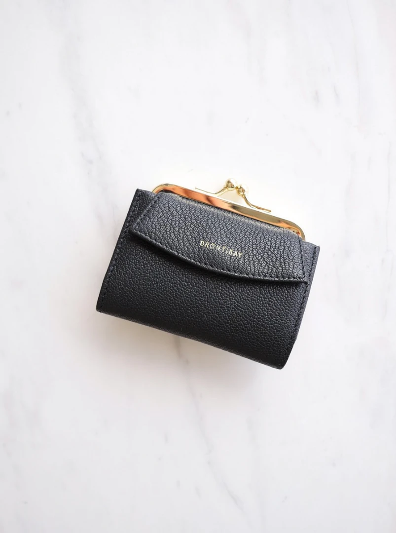 Maddy retro wallet in full grain goatskin leather with light natural grain, subtly gold-plated metal clasp, pocket with flap, closed with a snap that can hold several credit cardsÂ