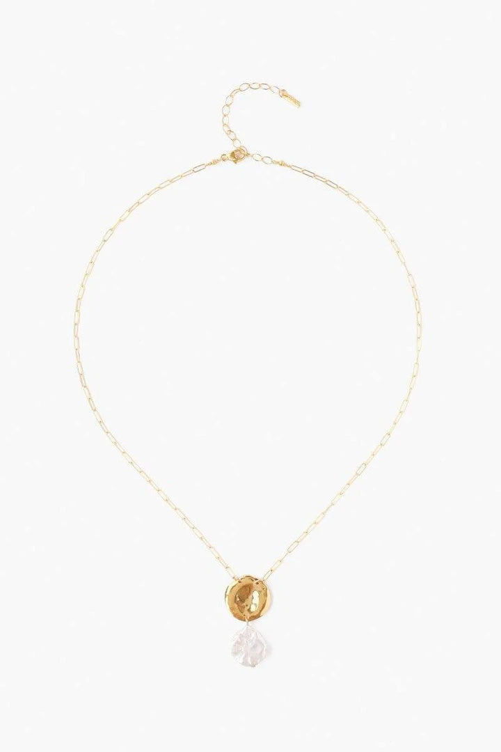 The brushed organic gold pendant yangs the yin of the freshwater pearl for a balance of nature and nurture, town and country. There is a beautiful series of earrings that match this we can never keep in stock so look out for them!