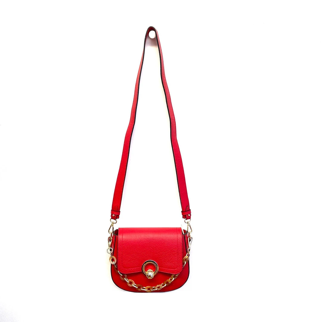Full Calfskin Leather, detachable long leather shoulder strap, removable tortoiseshell chain