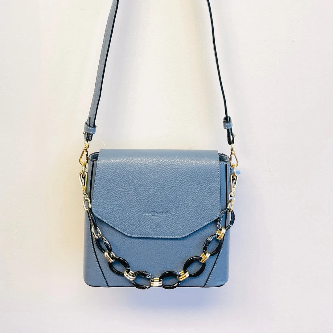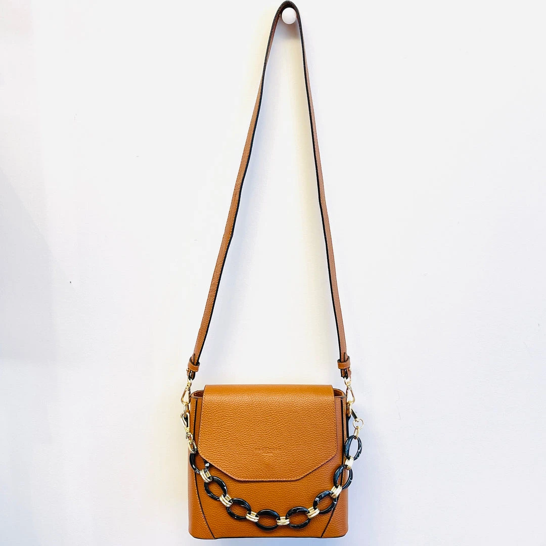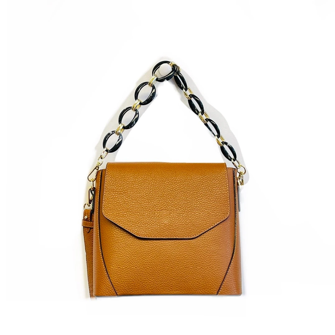 Full Calfskin Leather, detachable long leather shoulder strap, detachable resin tortoiseshell handheld chain