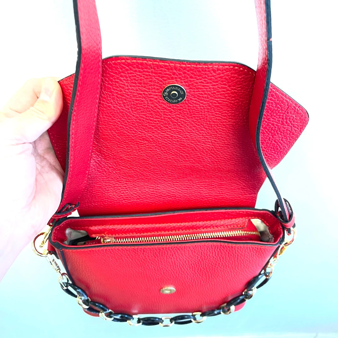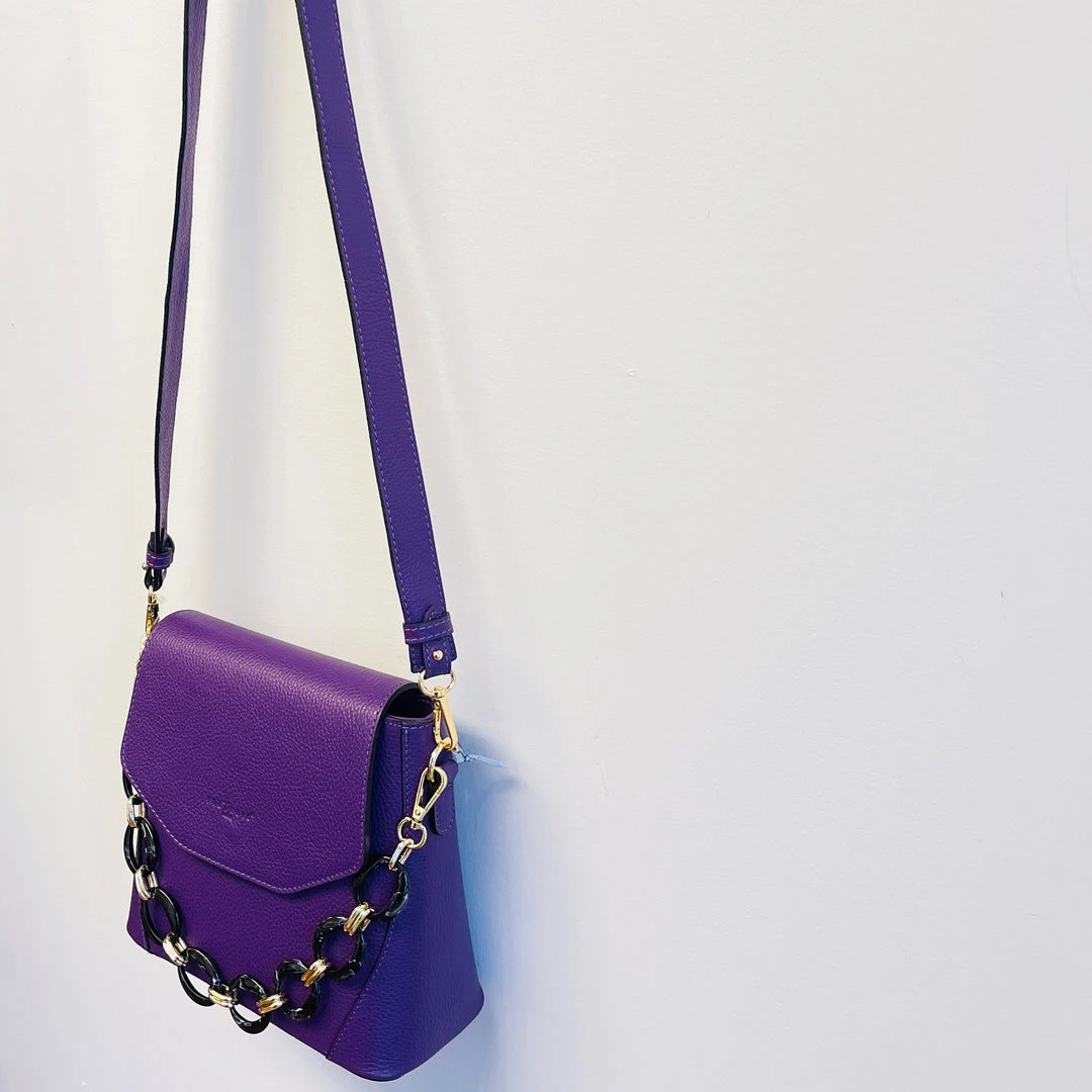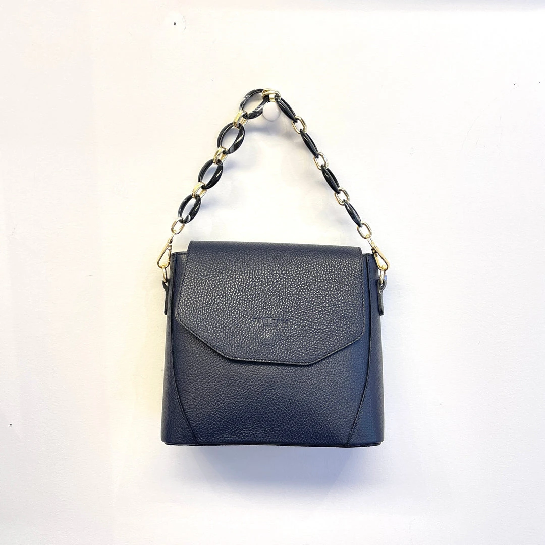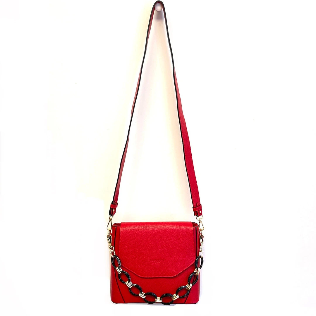 Full Calfskin Leather, detachable long leather shoulder strap, detachable resin tortoiseshell handheld chain