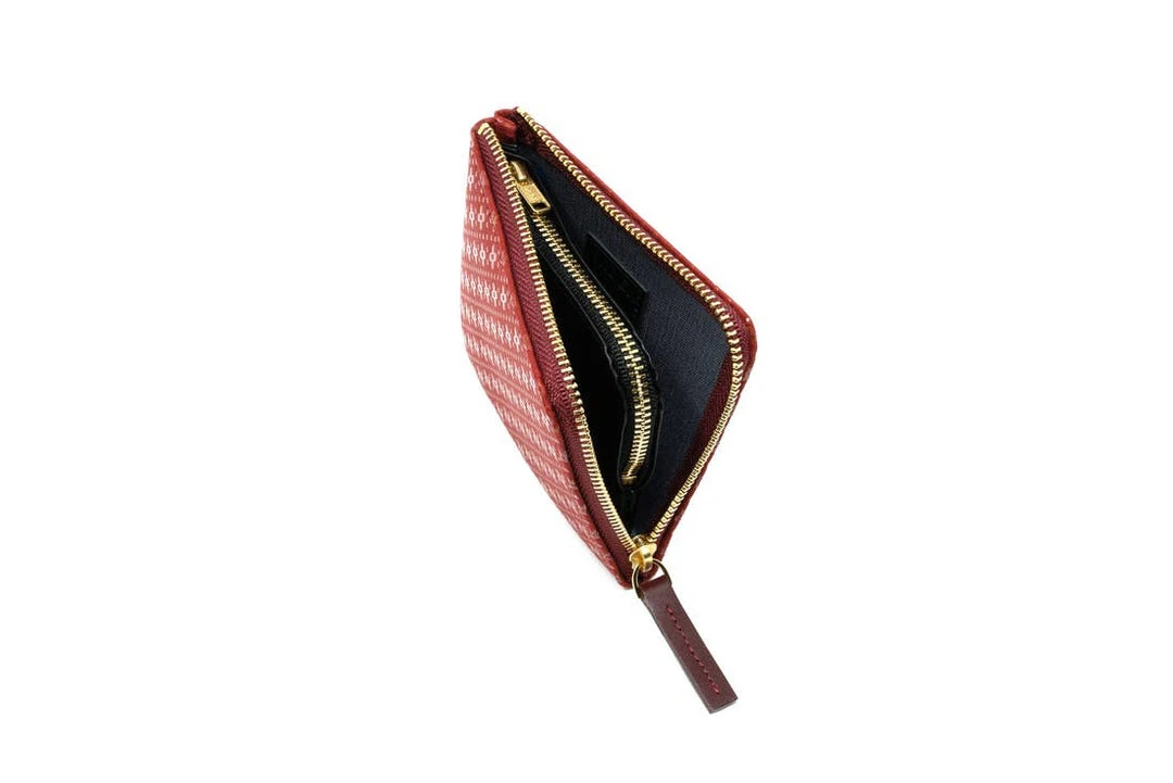 Zipped coin purse carefully designed and constructed by Japanese artisans. Inside pocket with zipper for coins or keys and two side pockets for your small essentialsÂ