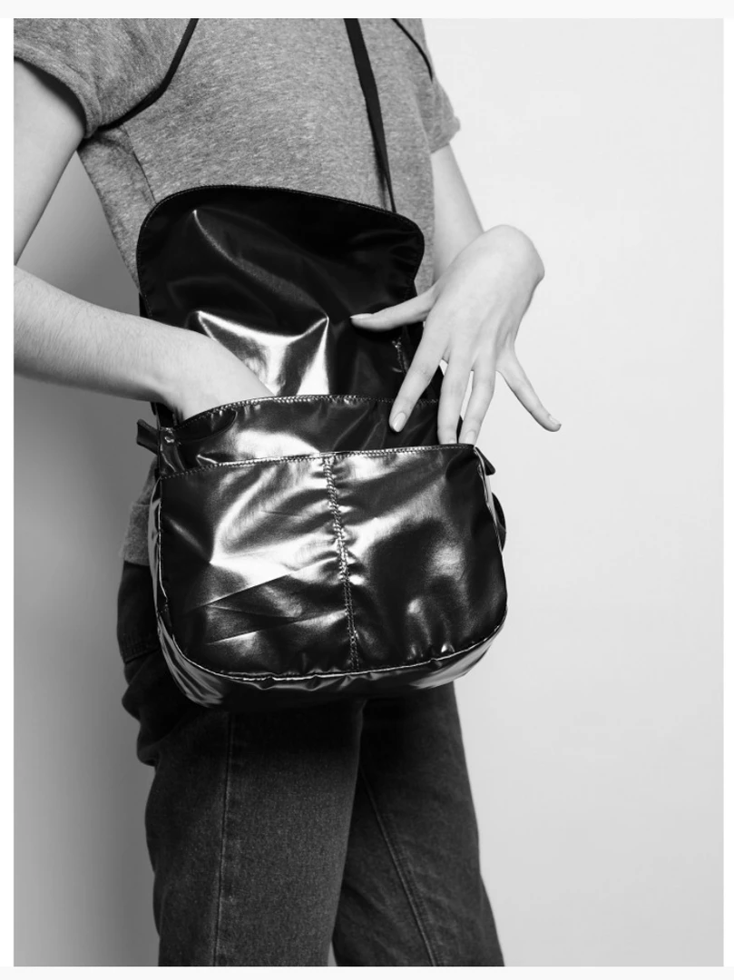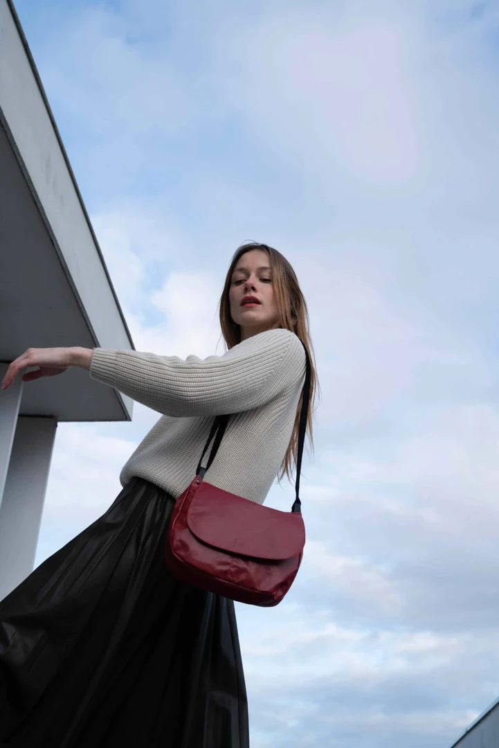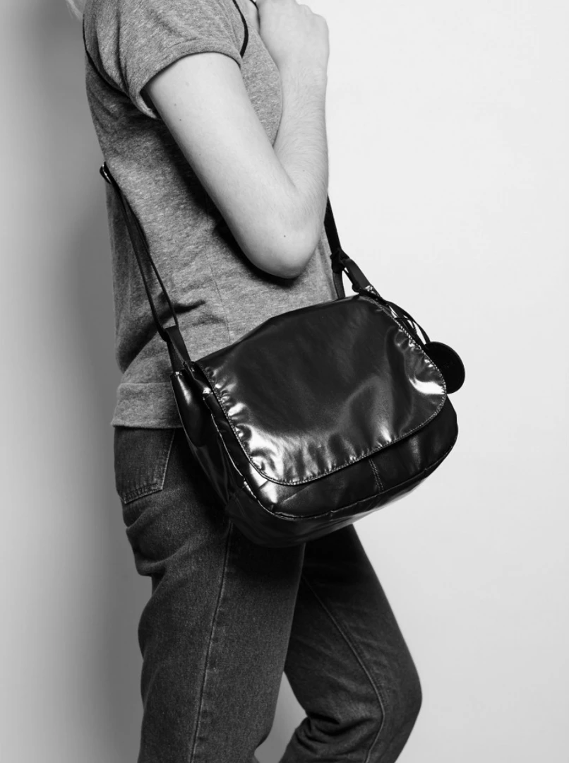 Nico is a mid-size flap messenger bag we adore for its 2 user friendly pockets that can fit a large cellphone and/or metro card, securely hidden under the flap
