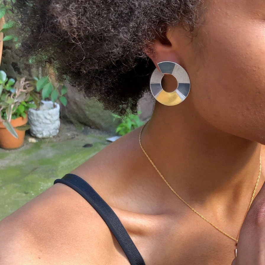 Materials: Fine Silve (99% Silver), partially oxidized fused with 24k gold leaf. Post is Sterling Silver.