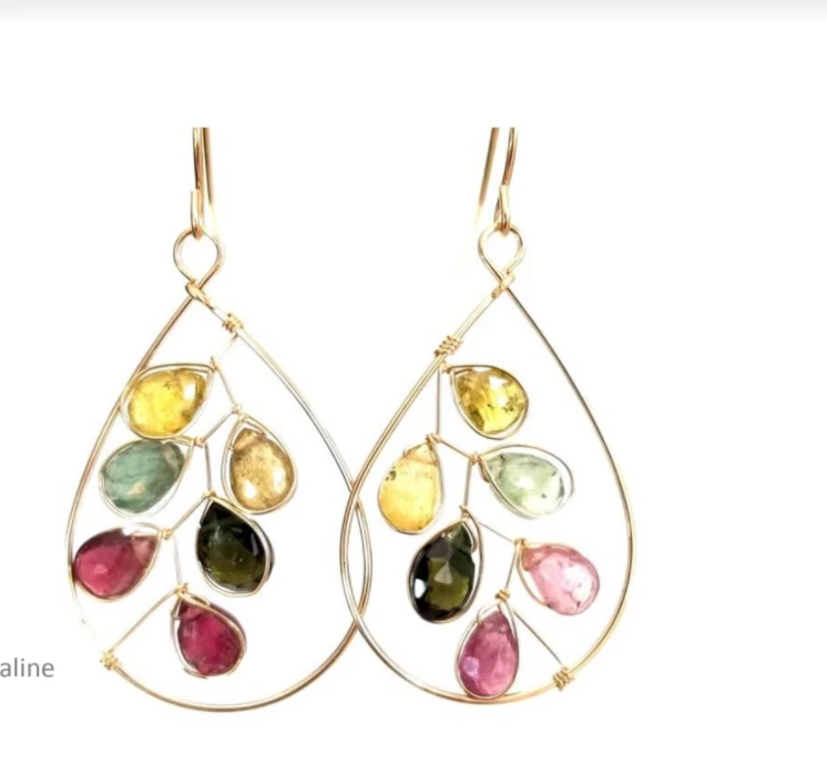 14K gold Filled wire woven through an array of tourmalines
