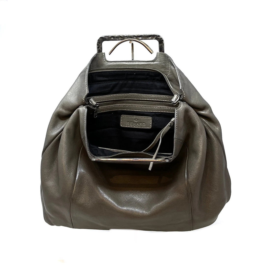 Crafted with precious and strong leather, this Rehard medium bag is the perfect accessory to complete your outfits. The antique silver handle gives an extra edge.
