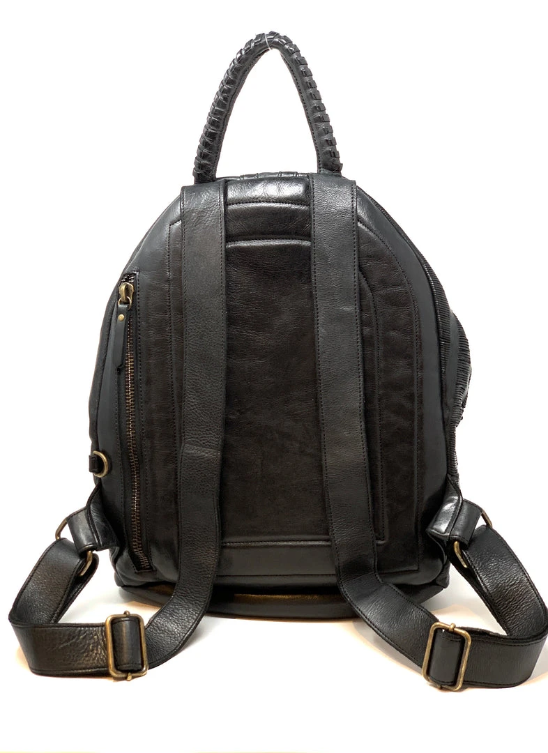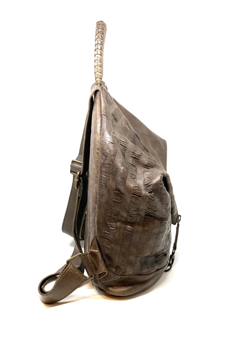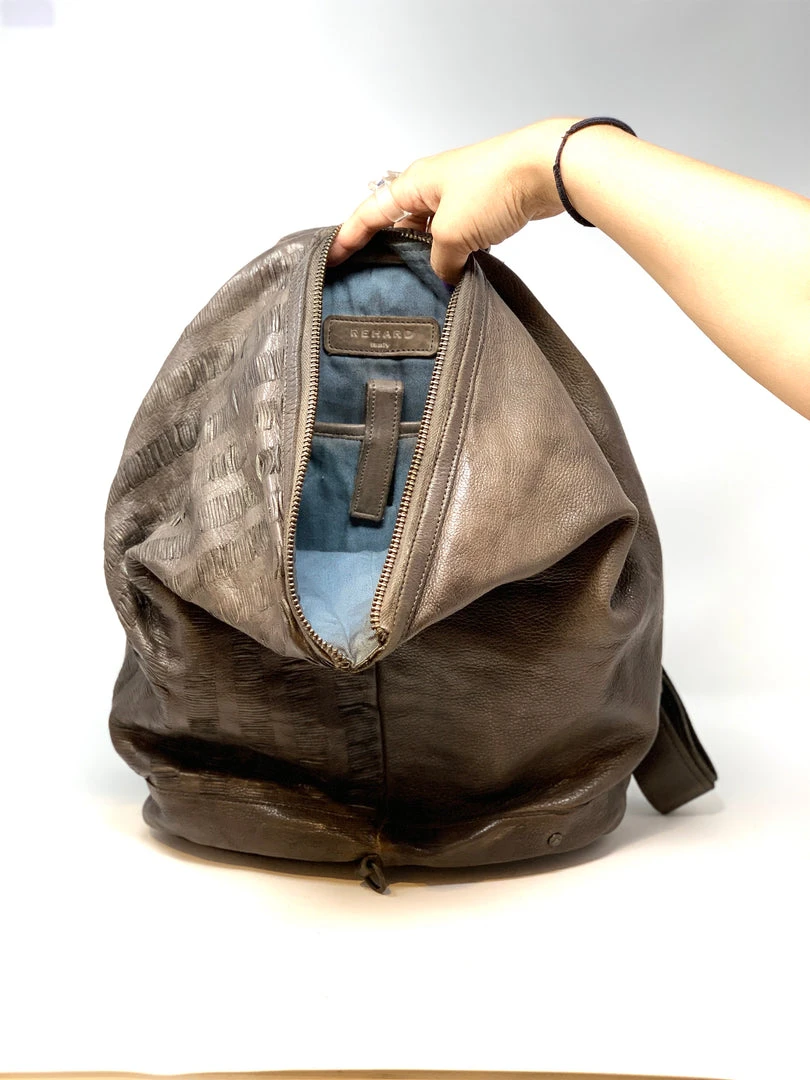 Made of washed Italian leather the solid colors develop a rich ombré finish that is more dramatic in the lighter colors. Featuring a zip and clip closure in addition to a hidden large zip pocket in the back. This is a great style for hiding your laptop in as it has a padded compartment for up to a 13” laptop.