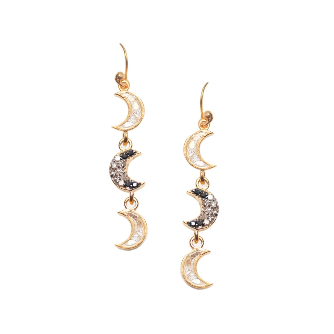 Whisk yourself away with the ethereal magic of the Ayla Drops. These enthralling earrings hold the mysteries of the moon and its feminine power. Balance the light and dark as effortlessly as these Pave champagne diamonds and Pave black diamond crescents entwine.