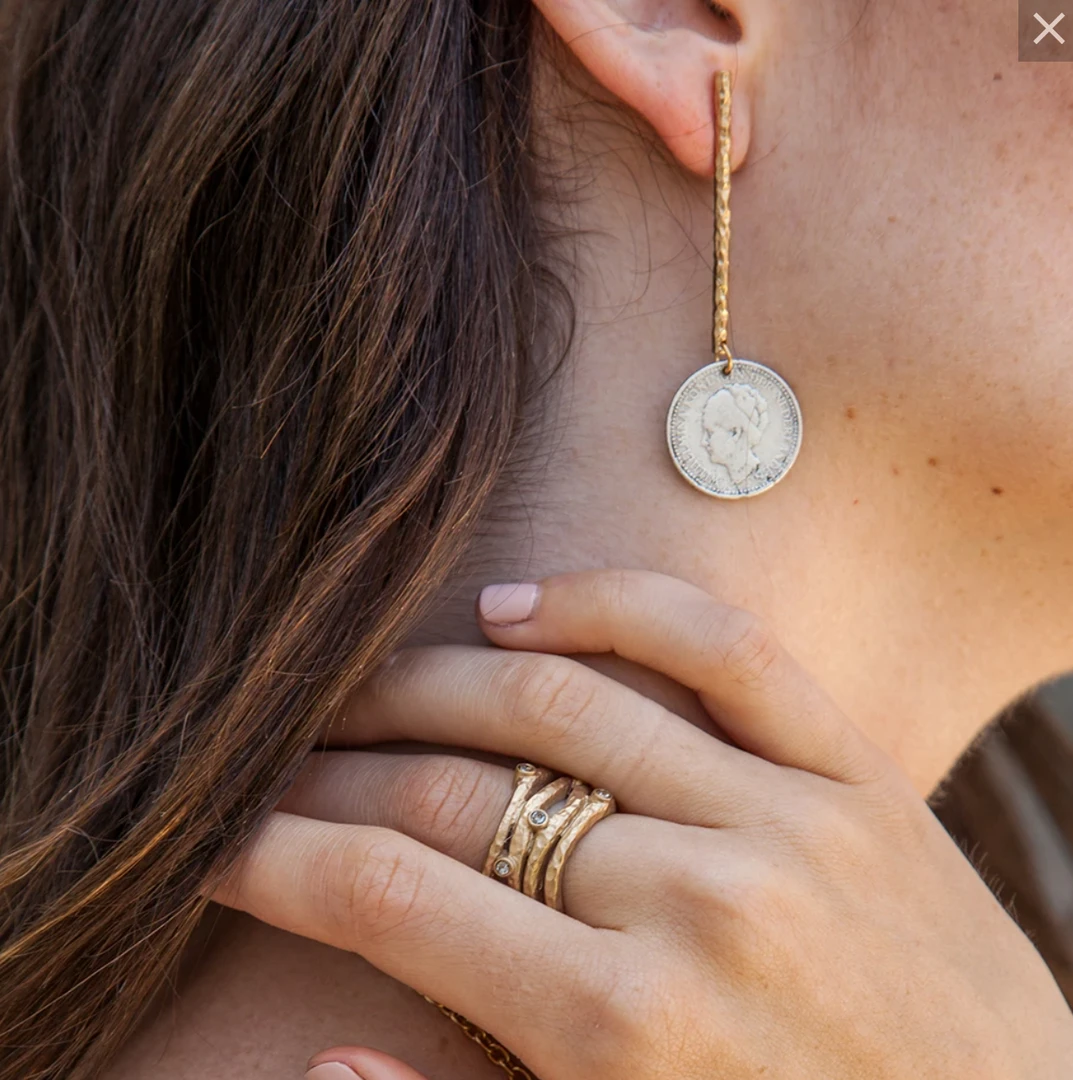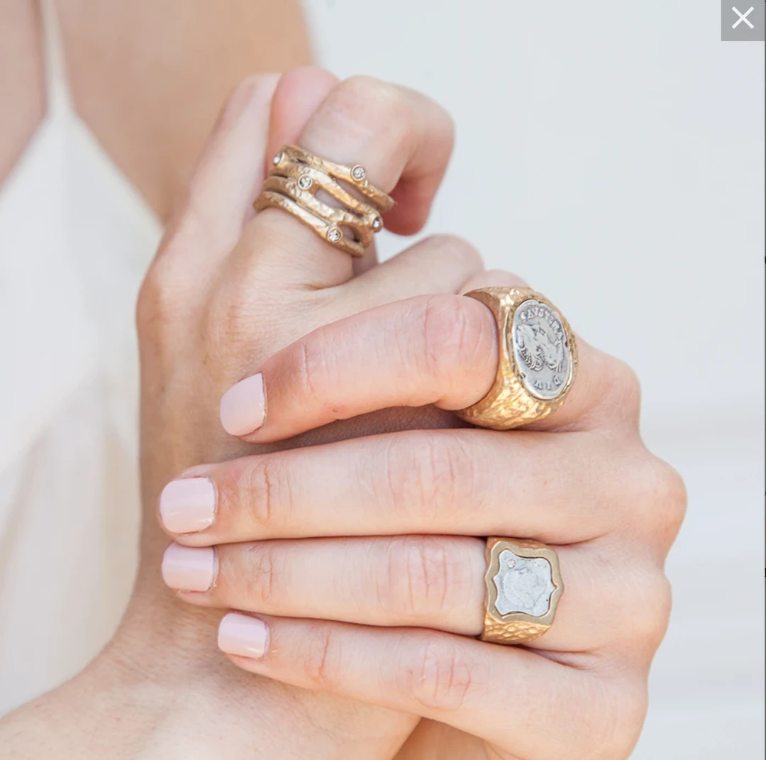- 24k gold plated brass hammered four row band ring