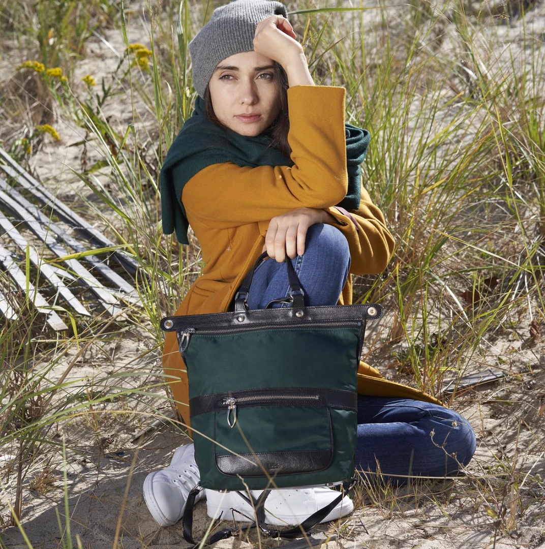 Water Resistant Italian Nylon& Black Buffalo Leather Trim