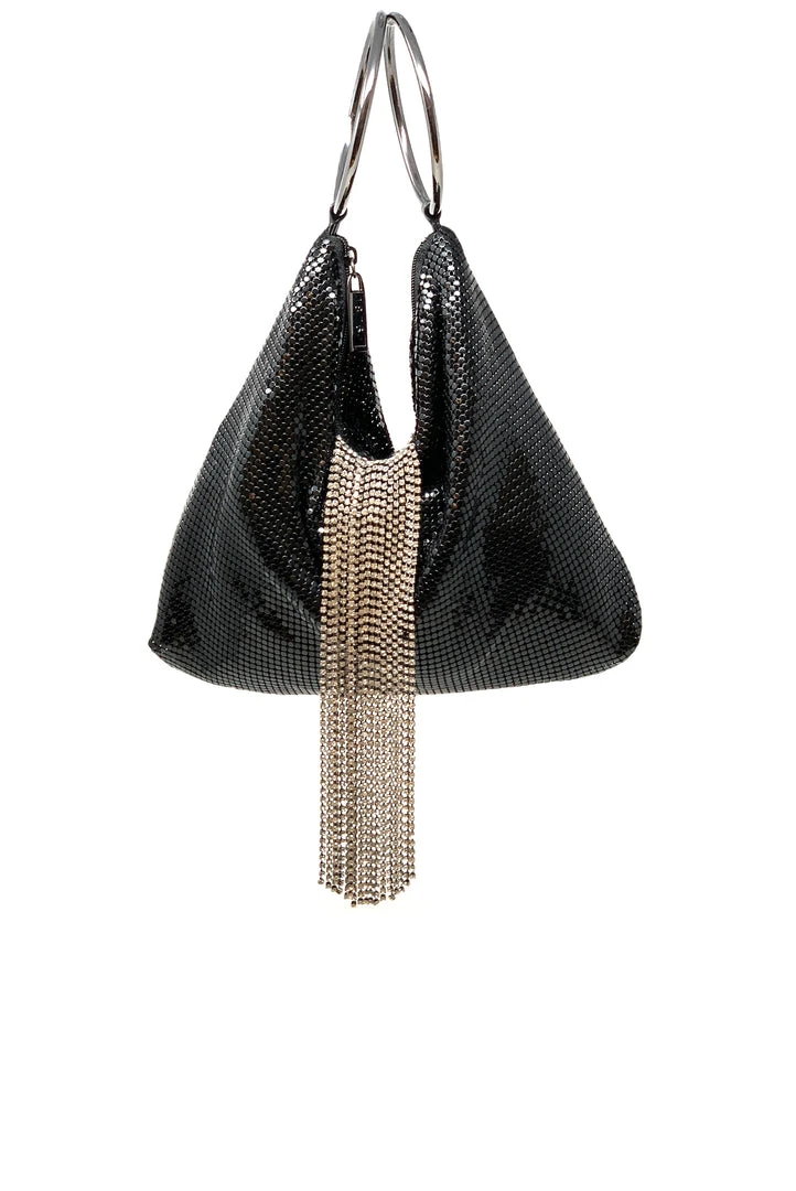 Whiting And Davis Black Triangle Mesh Cascade Bracelet Clutch